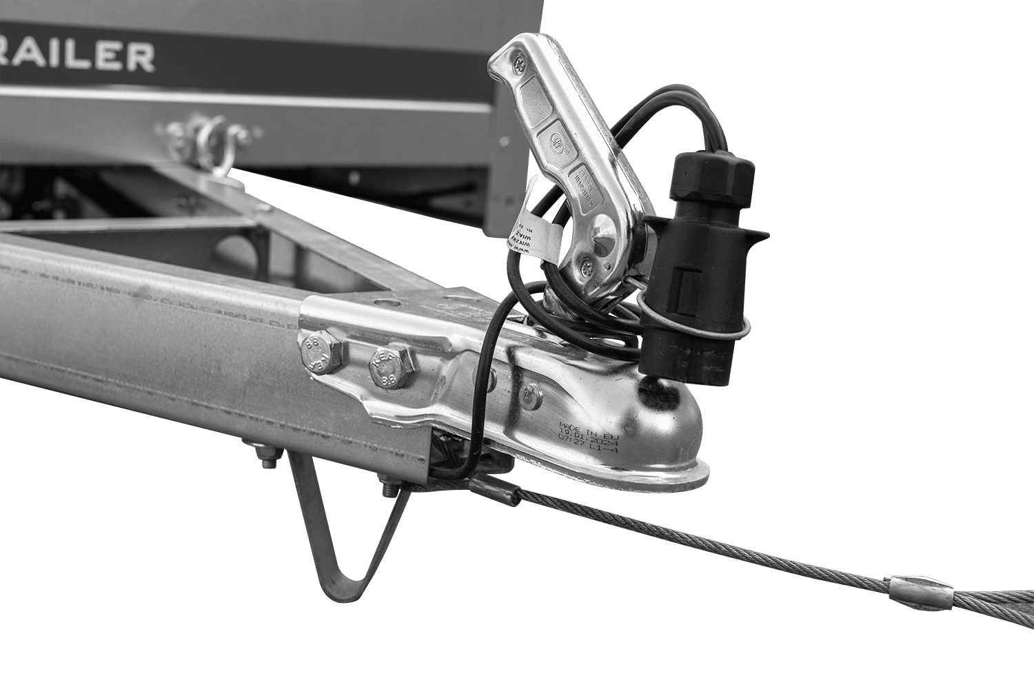 - Kippbare V-Deichsel, die jederzeit unter der Bodenplatte des Anhängers eingeklappt werden kann