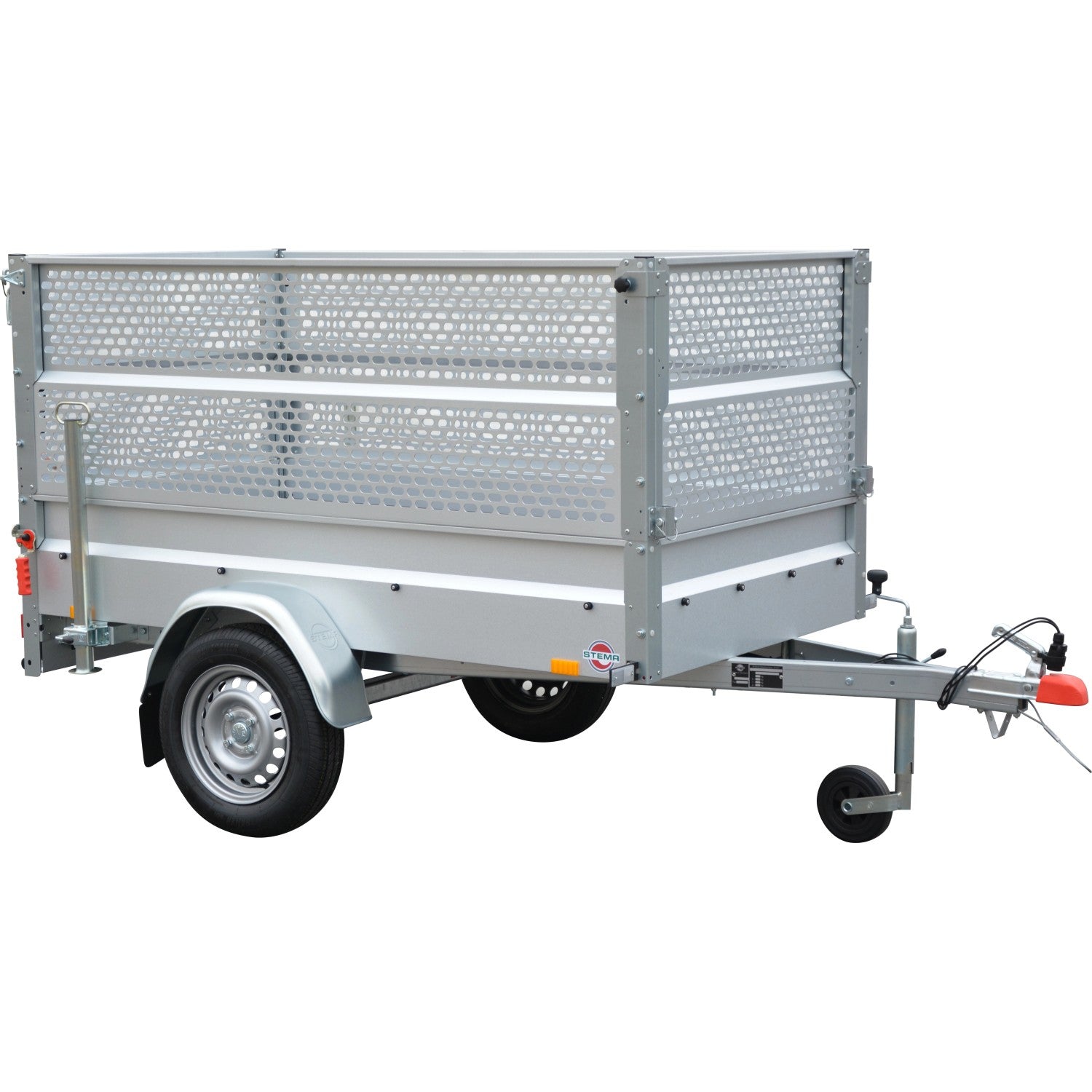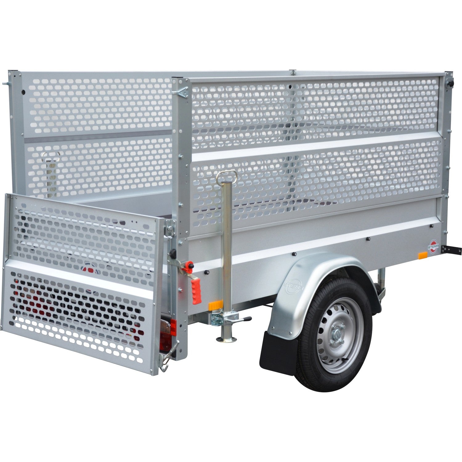 Die Montage des Gitteraufsatzes und der Abstellstützen erfolgt mit wenigen Handgriffen. Die nunmehr sehr große Laderaumhöhe von ca. 100 cm lässt eine Vielzahl von Einsatzzwecken des Anhängers Basic 750 zu. So wird ein einfacher Transport von Grünschnitt, Laub, Heu, Ästen oder Anderem möglich. Es können bis zu 562 kg, bzw. 2,15 m³ transportiert werden.