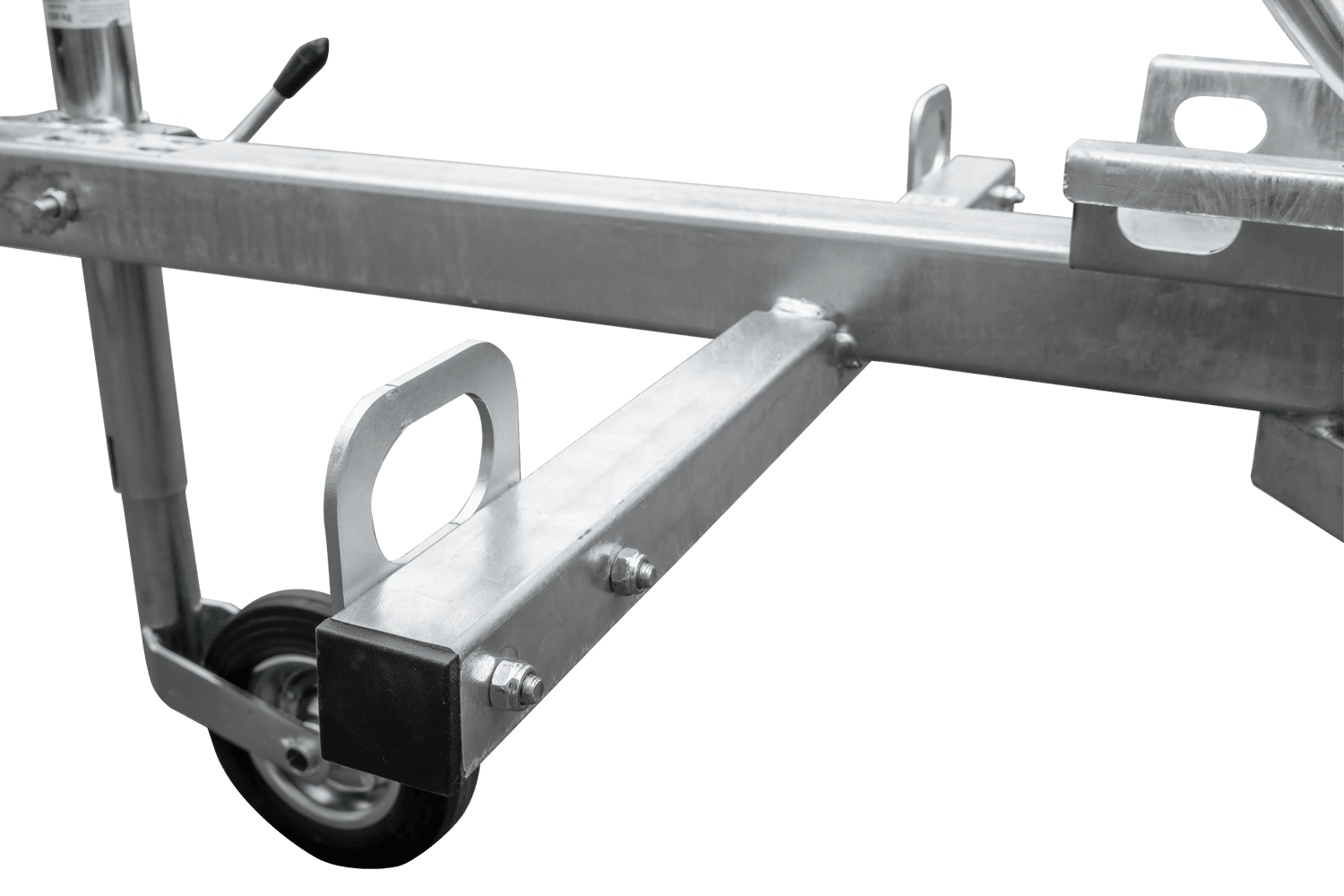 - 2 m lange Stahlführung mit einer Vorderradstütze am Ende
