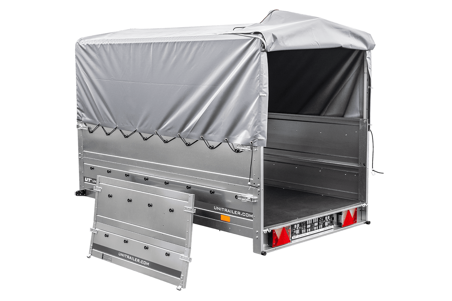 Unitrailer 230 FD Anhänger mit zusätzlichen Wänden, H-800-Rahmen und grauer Plane