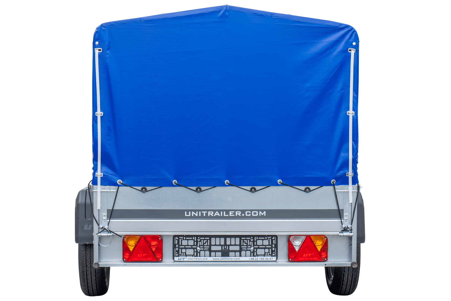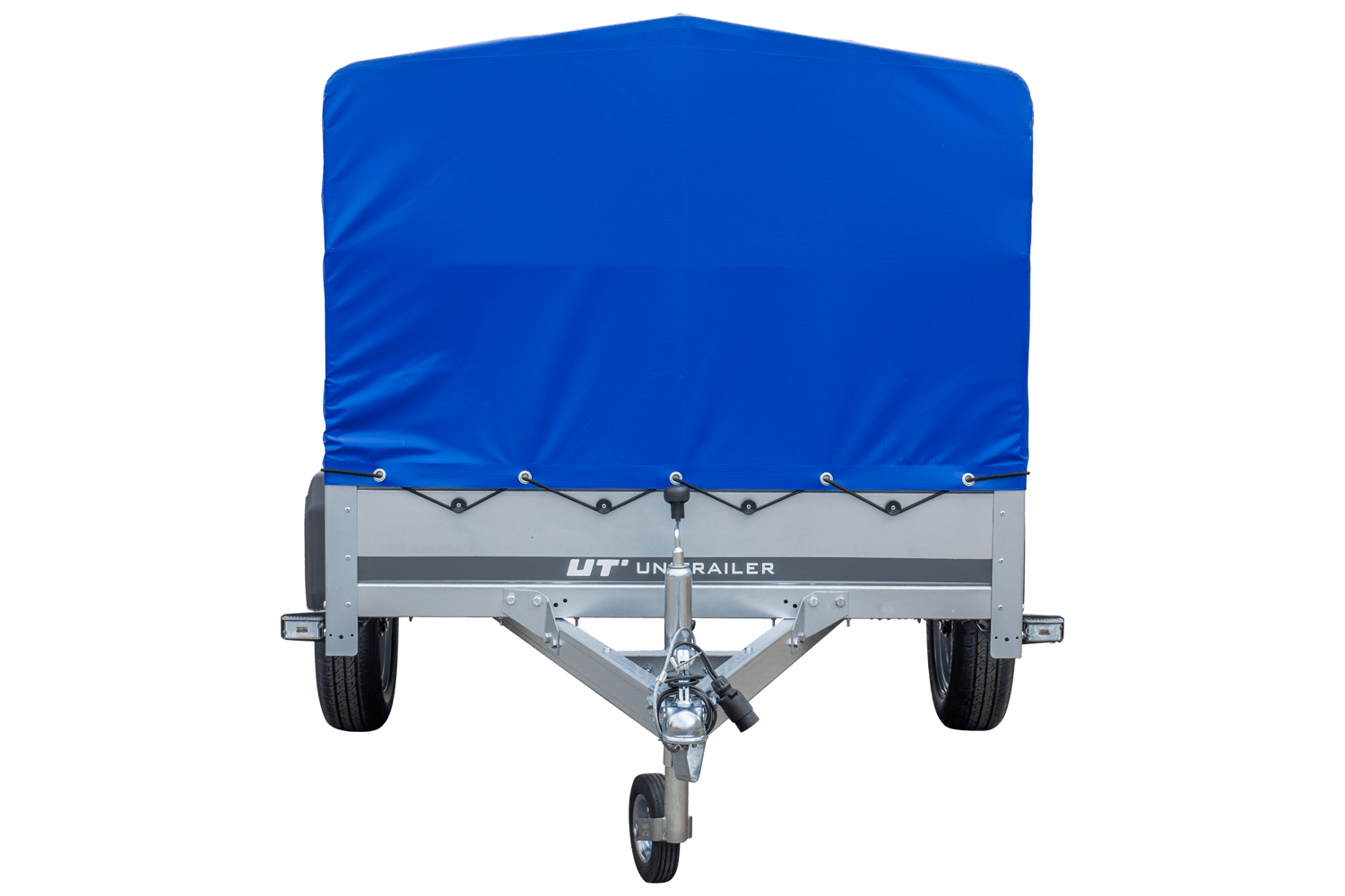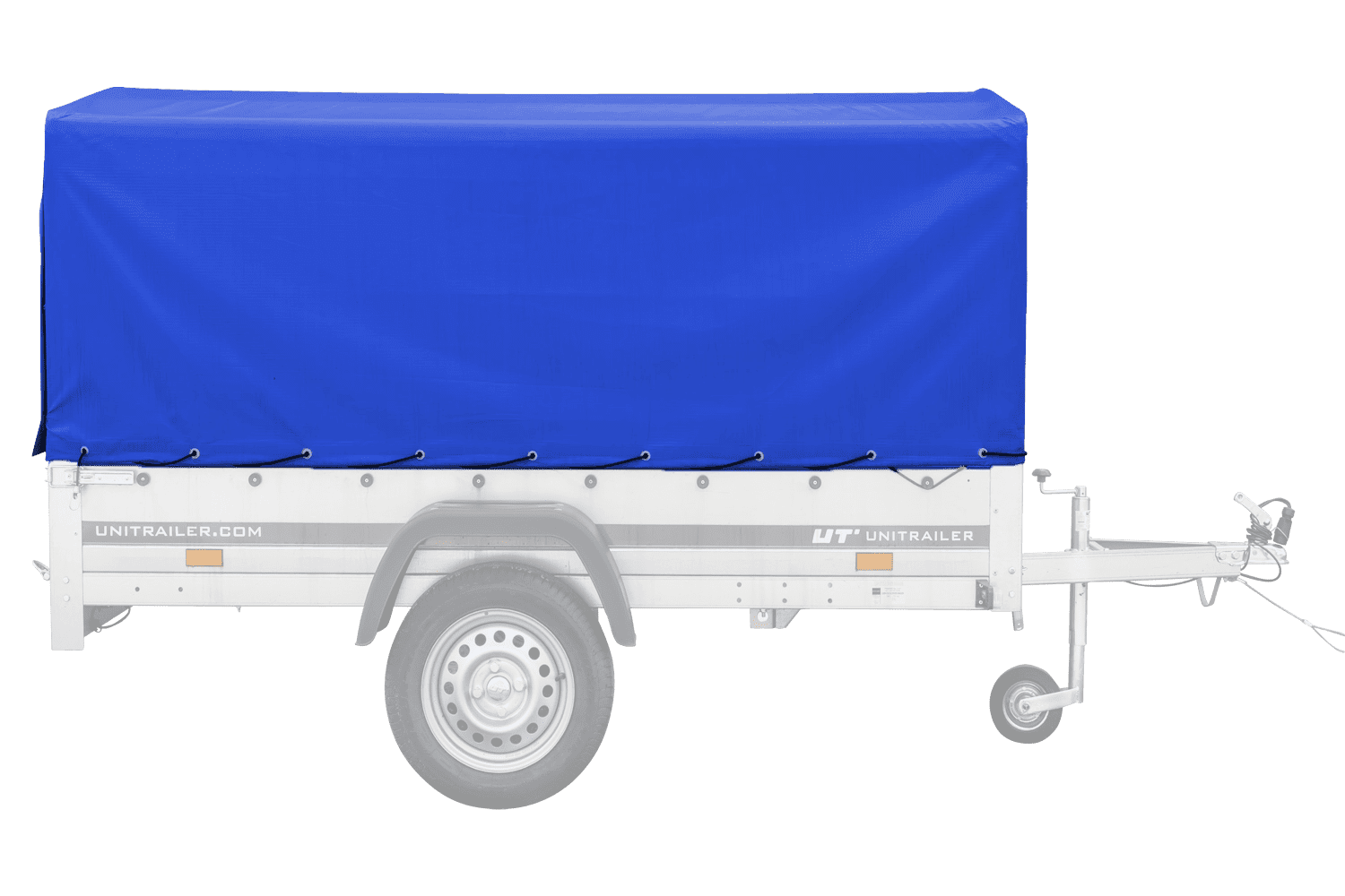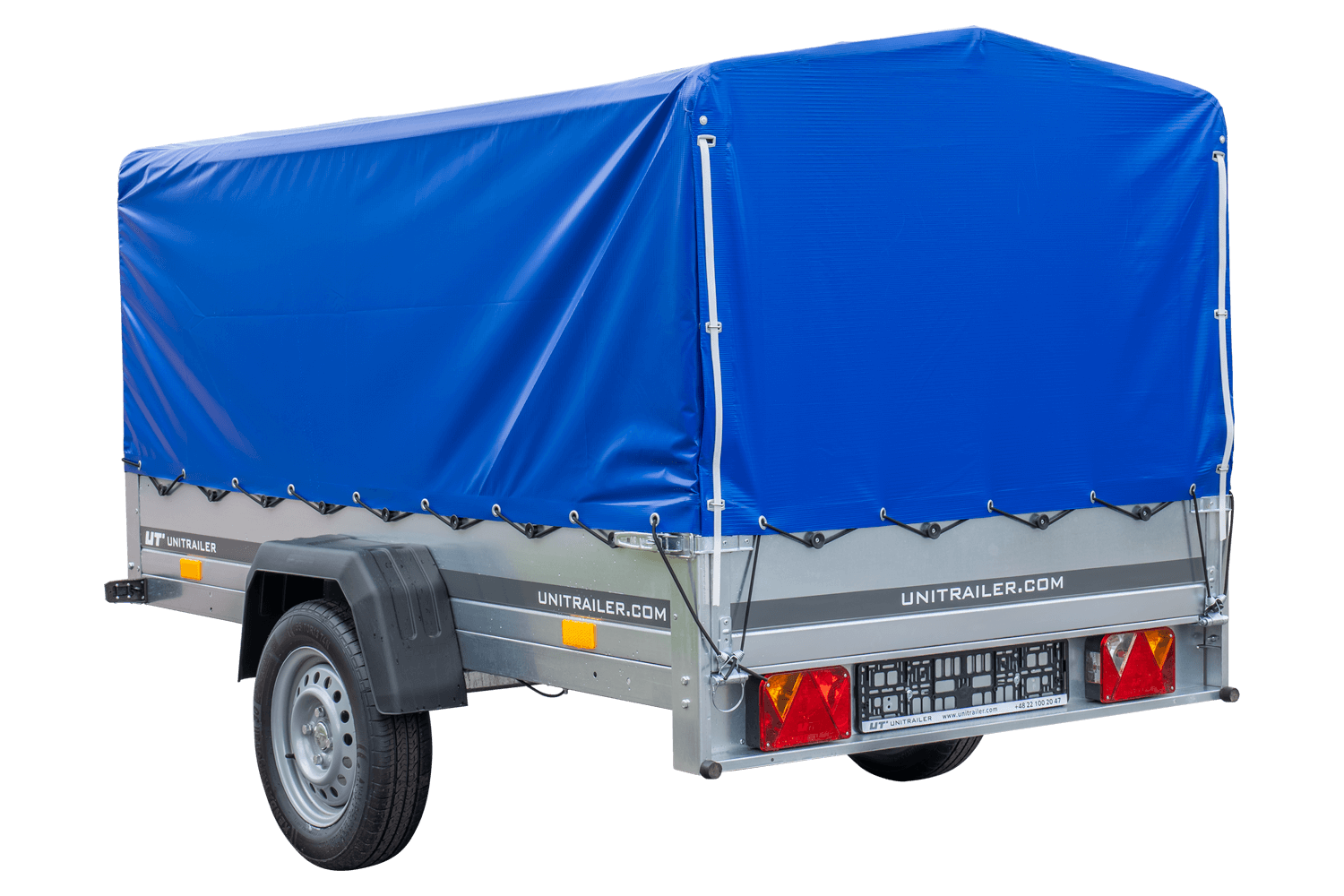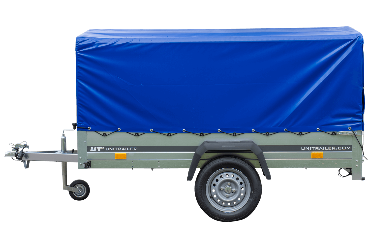 Einachsanhänger 230x125 cm mit blauer Plane, H-800 Spriegel und 30 cm Bordwänden von Unitrailer