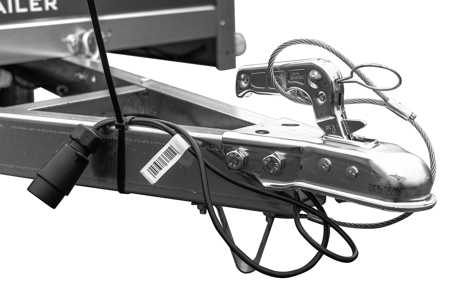 - FAHRGESTELL – Lenkachse vom Hersteller Knott oder ALKO – auf Bestellung von Unitrailer gefertigt. Raddimensionen: 155/70 R13. Die V-förmig neigbare Deichsel kann jederzeit unter den Anhängerboden geklappt werden.