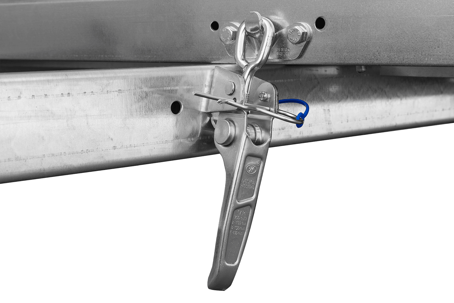 - Kippbare V-Deichsel, die jederzeit unter der Bodenplatte des Anhängers eingeklappt werden kann.