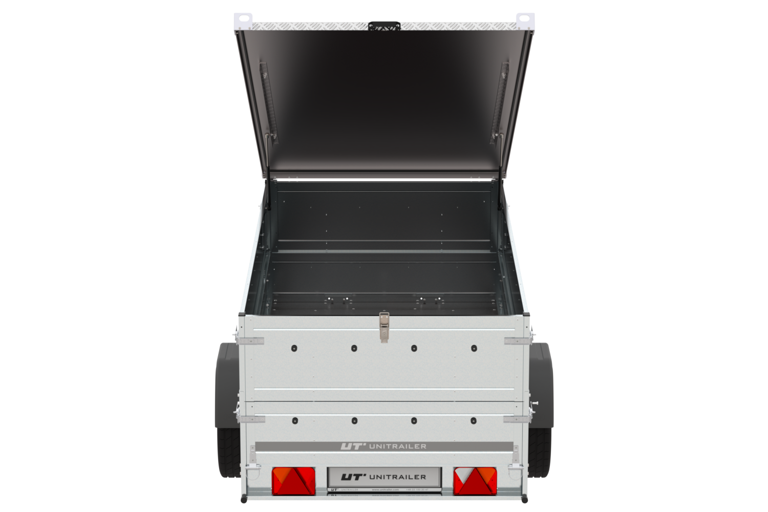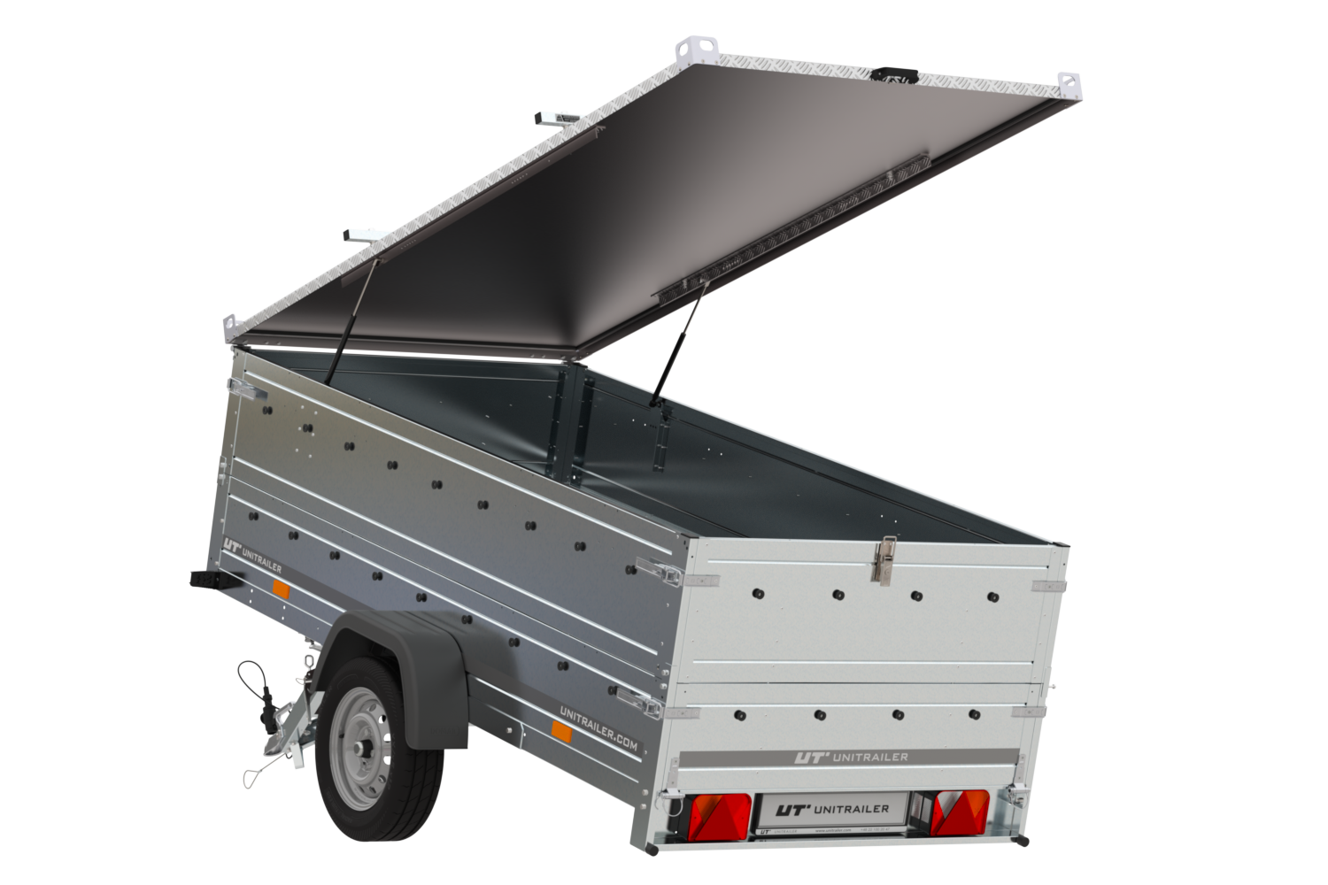 Der Alu Deckel für unser Anhängermodell GARDEN TRAILER 264 KIPP wiegt 62,14 kg und erweist sich als ideales Zubehör, um Ihre Waren während des Transports zu schützen. Der Alu Deckel hat zwei Verriegelungen an den Seiten, die die Haltbarkeit der gesamten Struktur verbessern und verfügt außerdem über zwei zusätzliche Schienen, auf denen Sie Dachträger oder Fahrradträger montieren können.