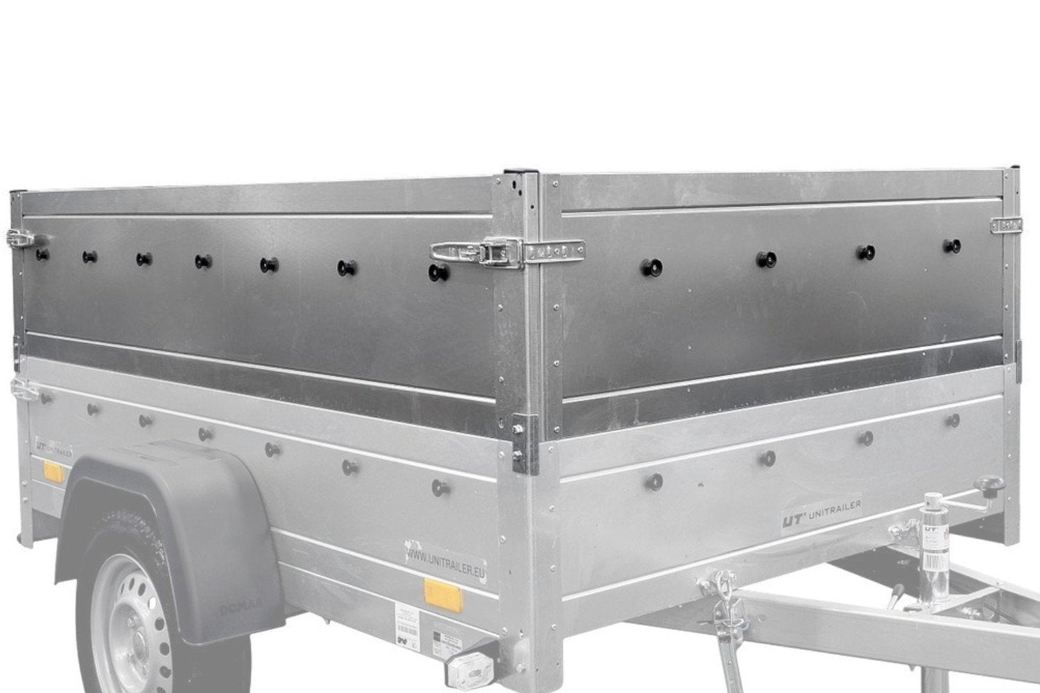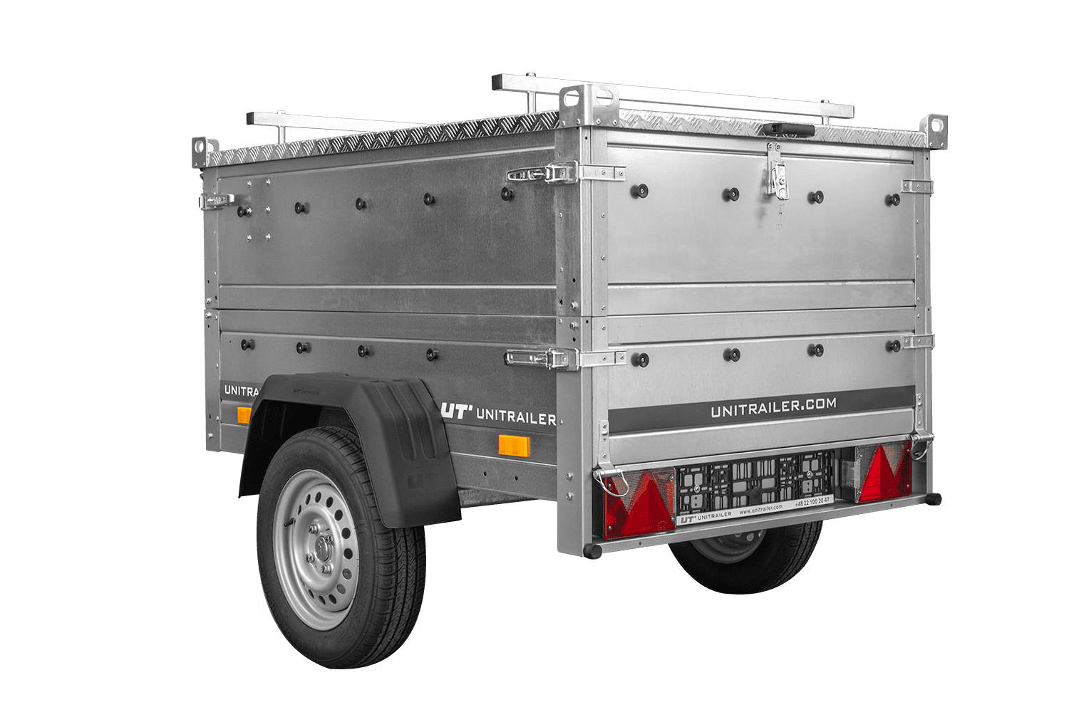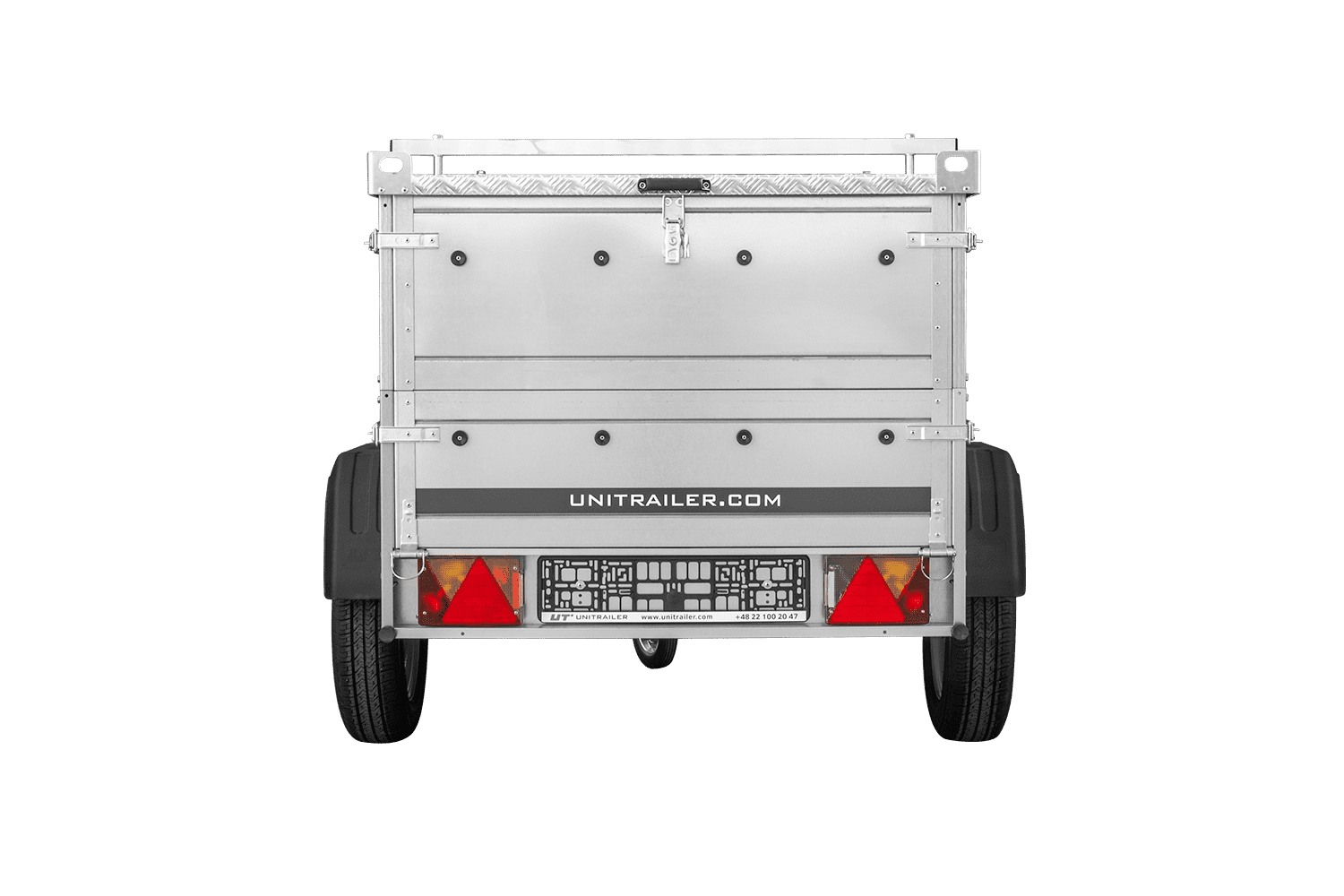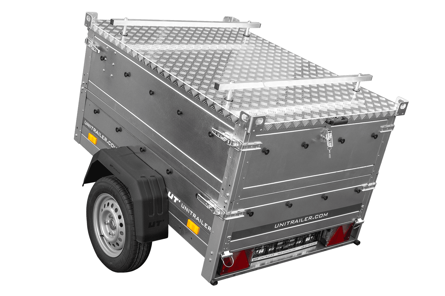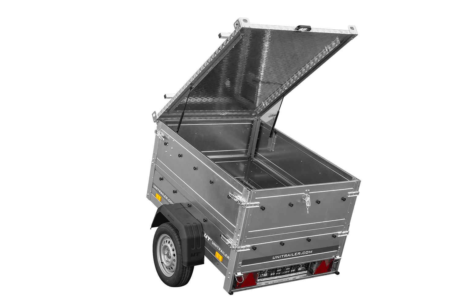 ALU-Abdeckung für den Anhänger UNITRAILER GARDEN TRAILER 150 KIPP aus leichtem und langlebigem Aluminium. An den Seiten ist die Struktur zusätzlich verstärkt, was für eine ausreichende Steifigkeit sorgt. Das geringe Gewicht der Abdeckung von nur 35 kg beeinträchtigt die Tragfähigkeit des Anhängers nicht. Ein lohnenswertes Element sind die oberen Schienen, auf denen Sie einen Dachträger oder einen Fahrradträger platzieren können und so Platz für den Transport verschiedener Arten von Gegenständen schaffen.