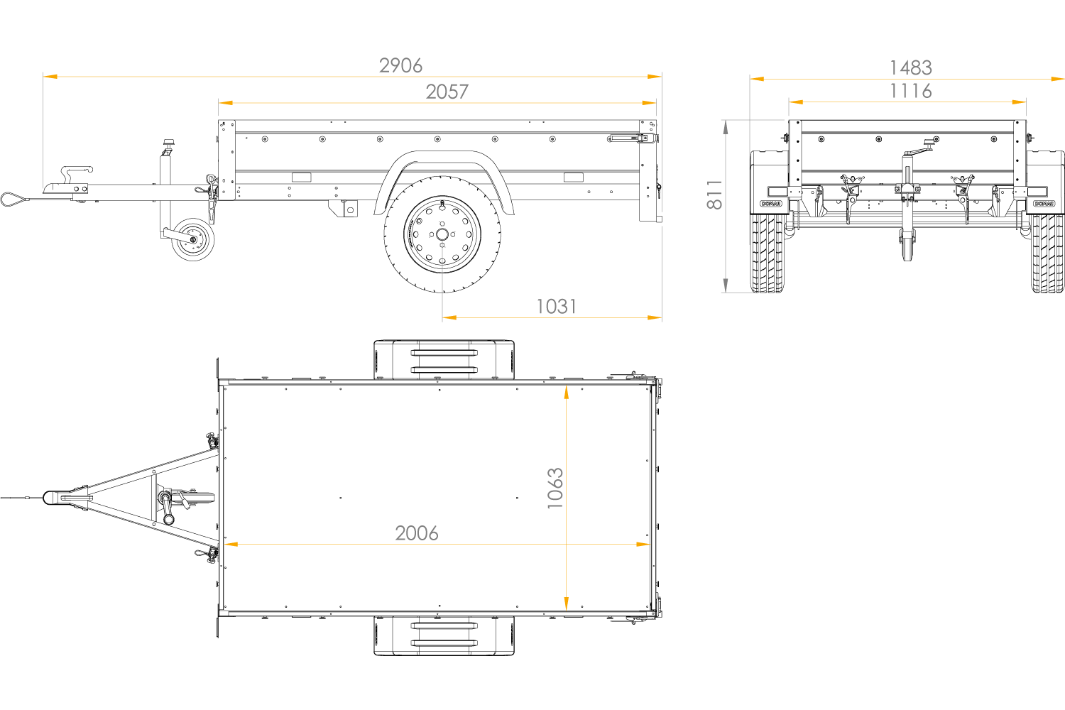 Gartenanhänger 200 Kipp mit Stützrad, H-0-Rahmen und grauer Plane