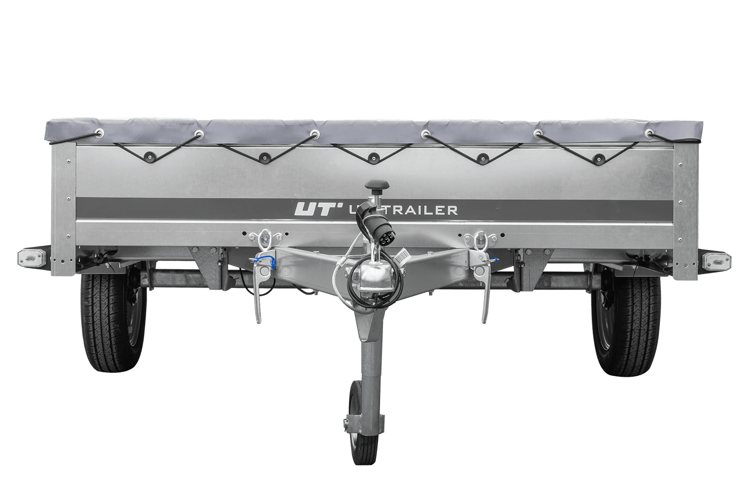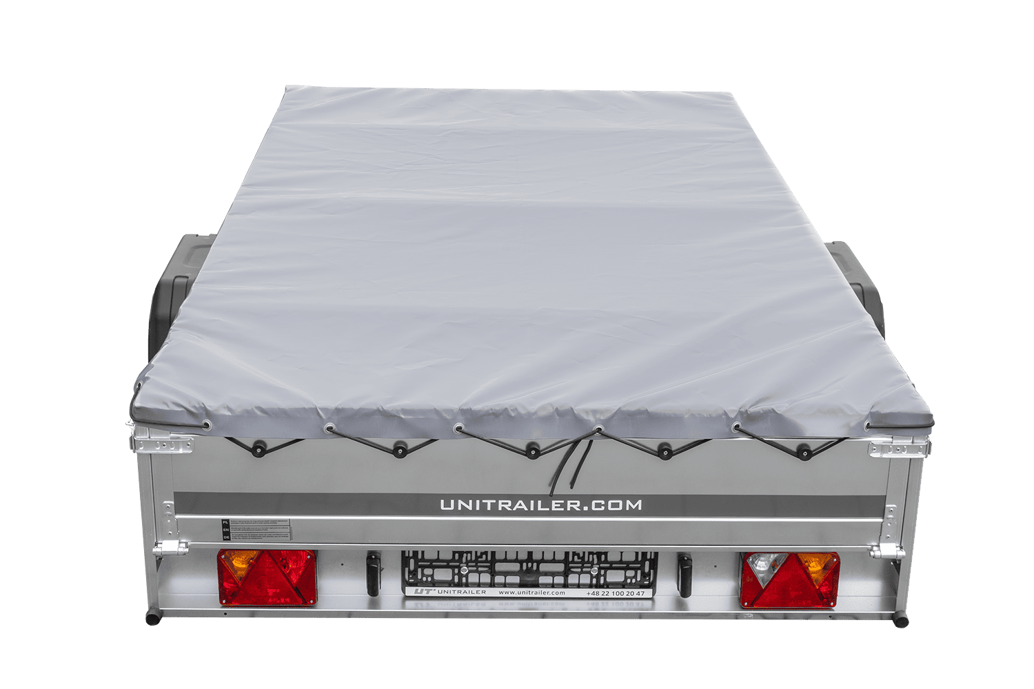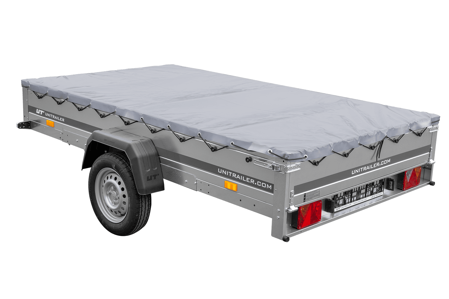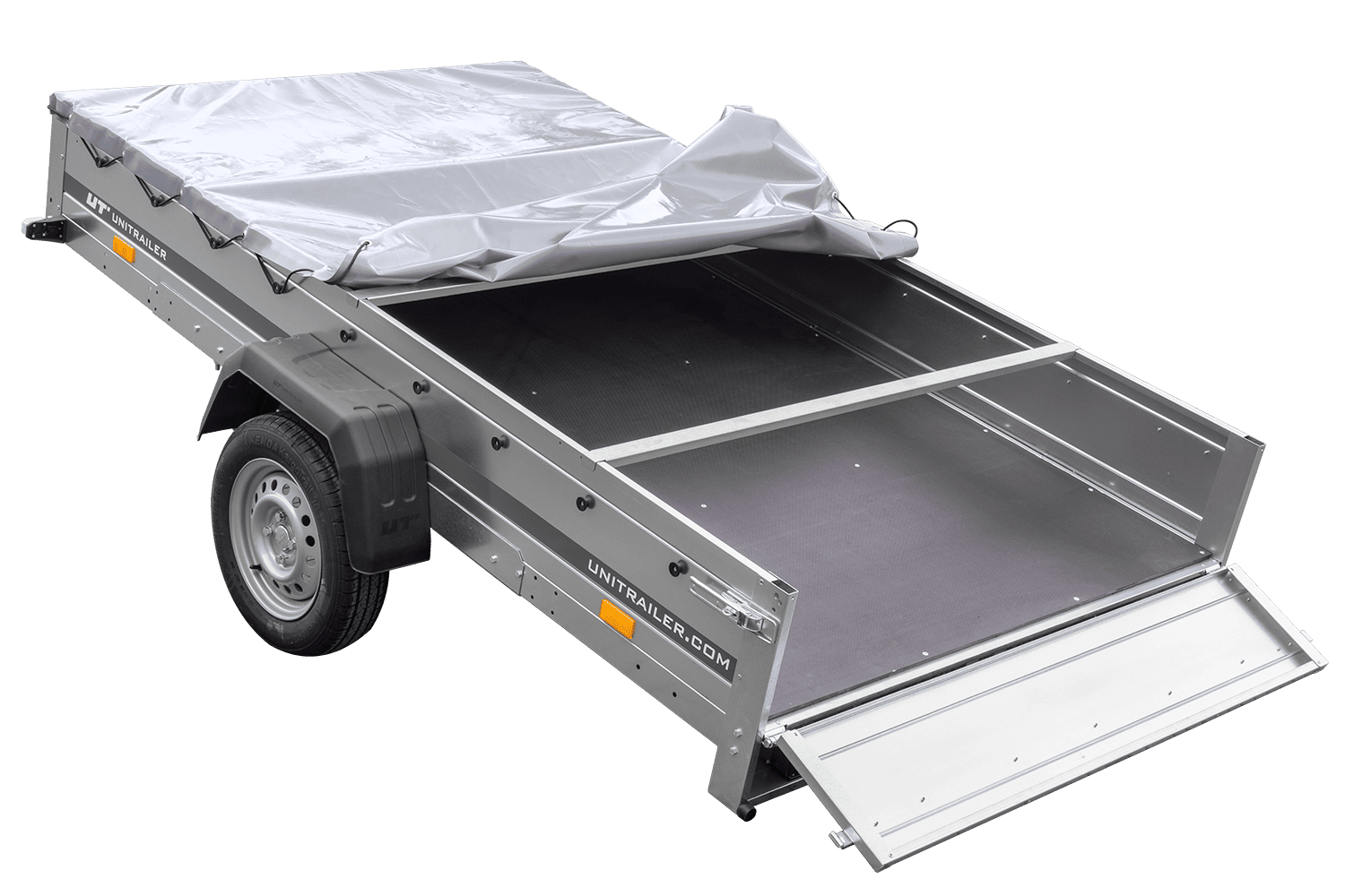 Der Anhänger mit zusätzlichen Seitenwänden, Flachrahmen und grauer Plane ist ein Einachsanhänger mit einem maximalen zulässigen Gesamtgewicht bis 750 kg . Um das Be- und Entladen zu erleichtern, verfügt der Anhänger über die Möglichkeit, die Heckseite zu öffnen bzw. abzunehmen. Die graue Plane schützt die Ladung wirksam vor Niederschlag und Sonneneinstrahlung und der flache Rahmen verhindert, dass die Abdeckung unter der Last von Regen oder Schnee nach innen zusammenfällt. Die Plane besteht aus dickem, wasserdichtem Das Material hat ein Gewicht von 630 g/m² und selbst lang anhaltender Regen führt nicht zu Undichtigkeiten.