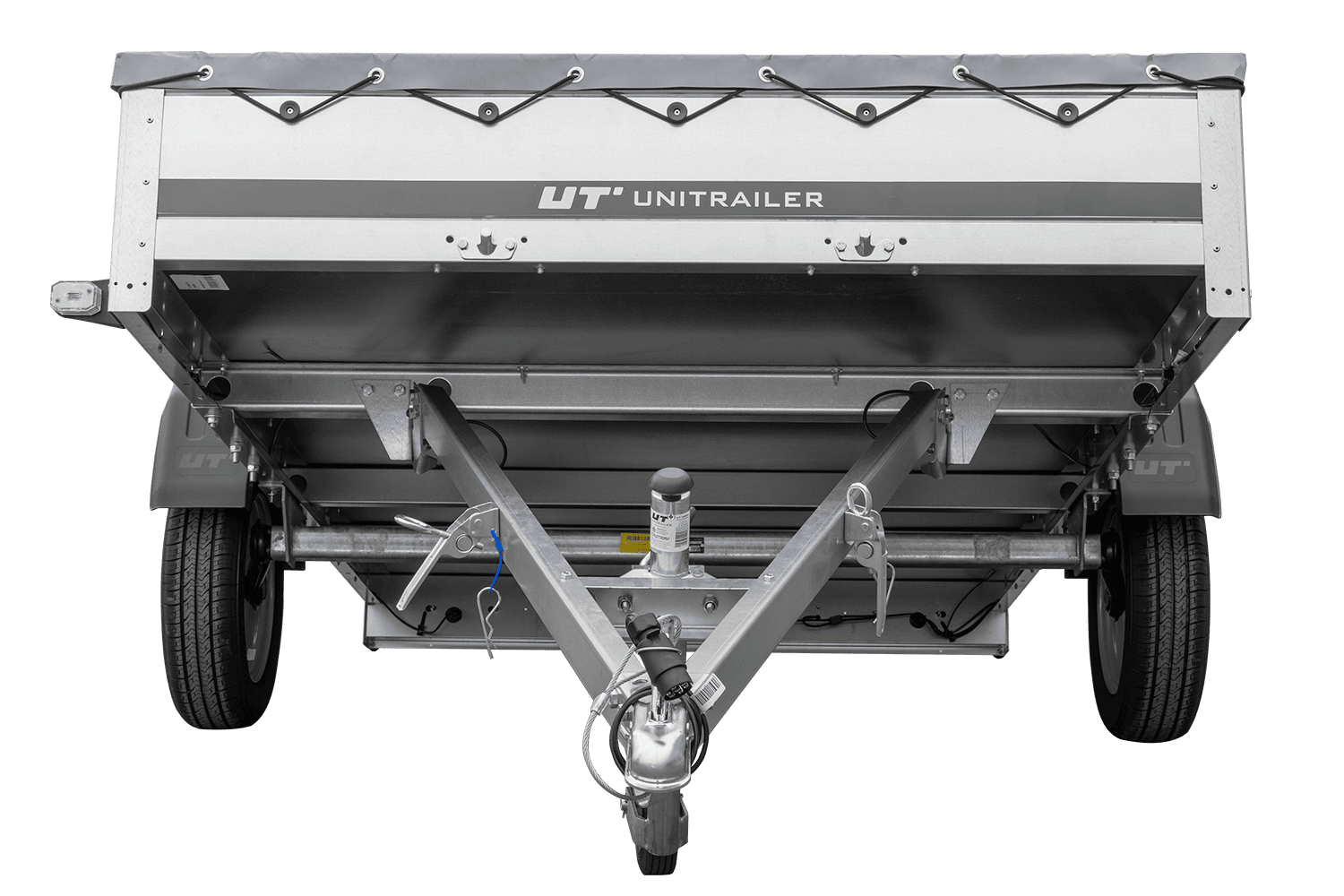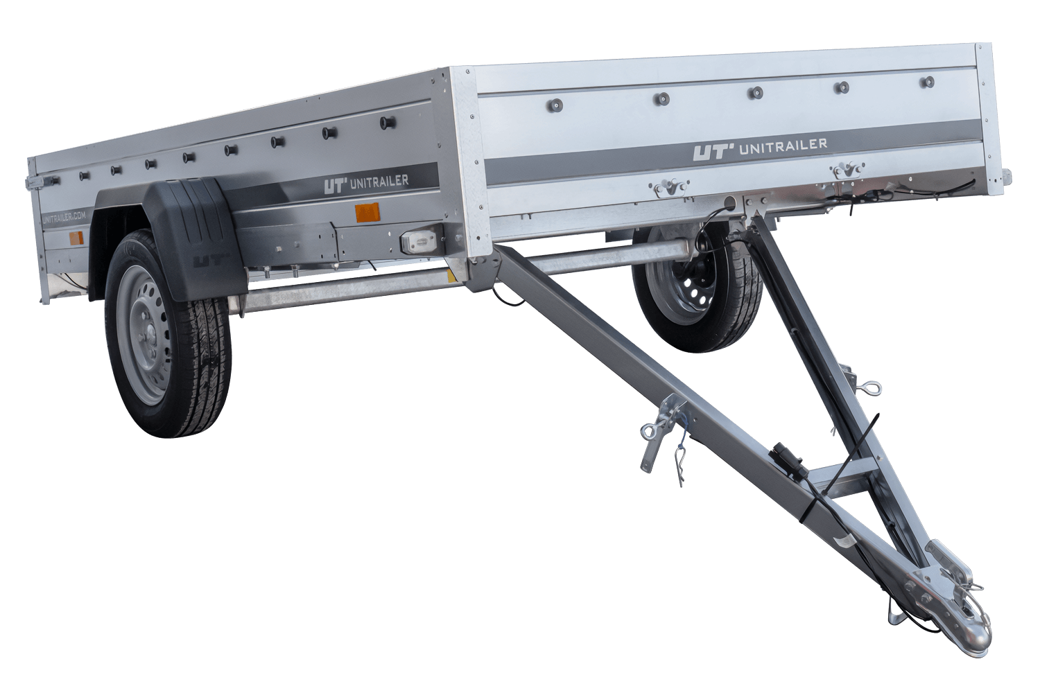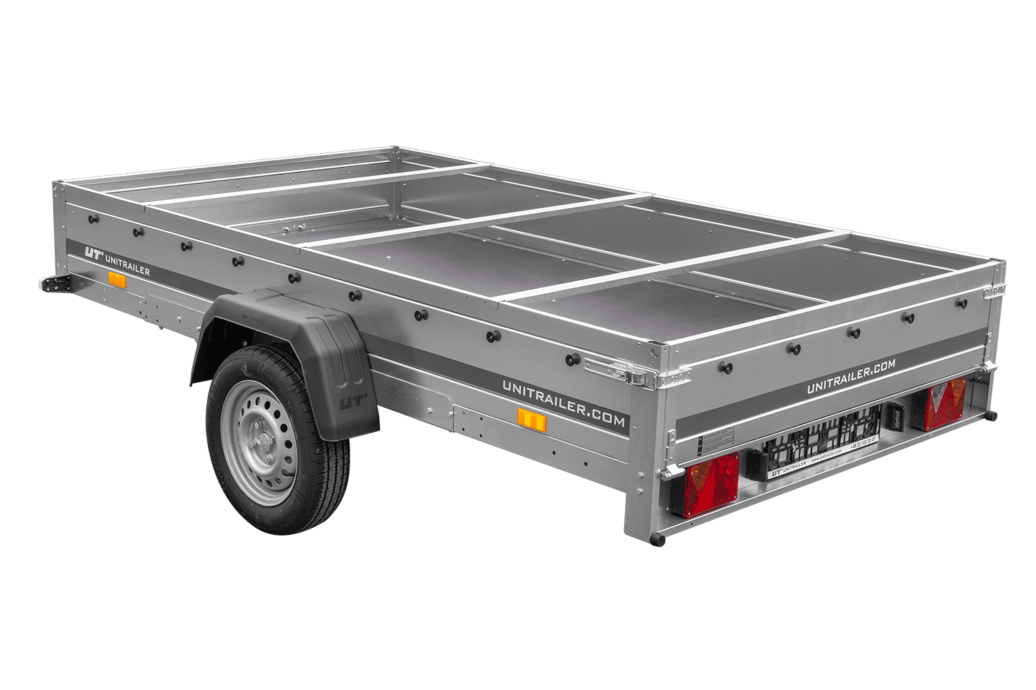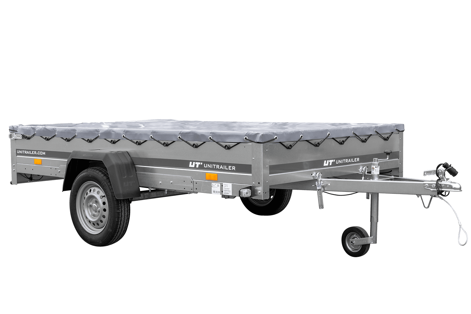 Der Anhänger mit zusätzlichen Seitenwänden, Flachrahmen und grauer Plane ist ein Einachsanhänger mit einem maximalen zulässigen Gesamtgewicht bis 750 kg . Um das Be- und Entladen zu erleichtern, verfügt der Anhänger über die Möglichkeit, die Heckseite zu öffnen bzw. abzunehmen. Die graue Plane schützt die Ladung wirksam vor Niederschlag und Sonneneinstrahlung und der flache Rahmen verhindert, dass die Abdeckung unter der Last von Regen oder Schnee nach innen zusammenfällt. Die Plane besteht aus dickem, wasserdichtem Das Material hat ein Gewicht von 630 g/m² und selbst lang anhaltender Regen führt nicht zu Undichtigkeiten.