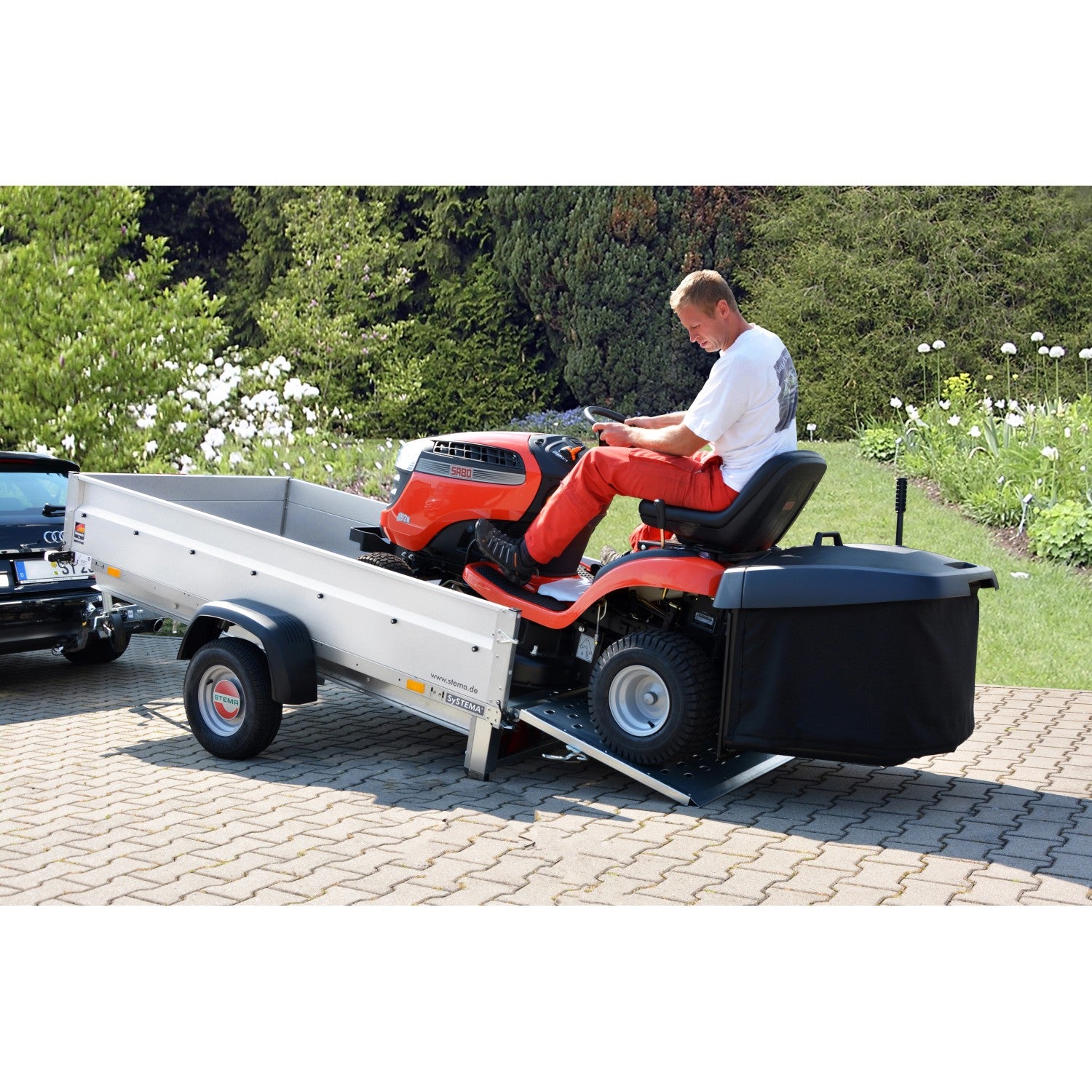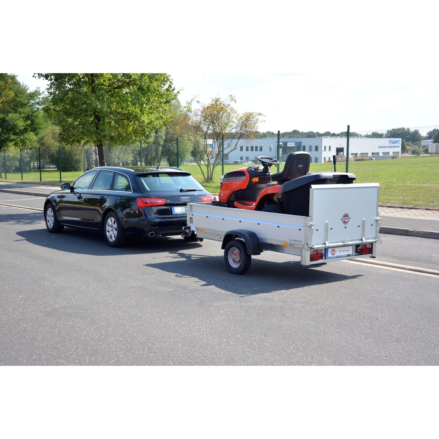 Der Stema-Anhänger REX 25 ist ein robuster, ungebremster Einachs-Anhänger mit kippbarer Ladefläche. Durch Betätigen der Teleskopkurbel wird die Kippbrücke in die gewünschte Position gebracht. Die Rückwand ist sofort als Auffahrrampe nutzbar. Dadurch kann der REX 25 vielseitig eingesetzt werden, z.B. zum Transport von Rasentraktoren, Motorrädern oder kleinen Maschinen. Er ist der ideale Anhänger im Landschaftsbau, für Kleingärtner, Hausmeister und Motorsportfreunde.