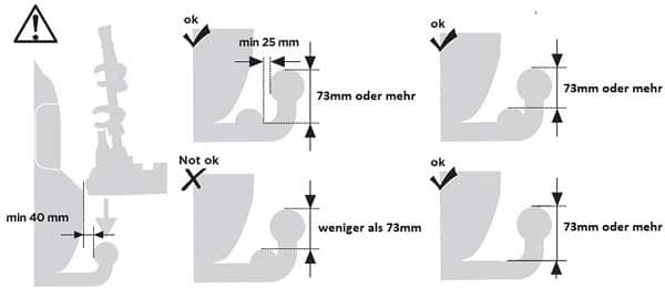 Mindestens 7,3 cm Abstand zwischen Kugeloberkante und Steckdose erforderlich.